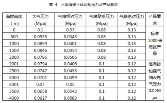 在智利等南美國家,海拔一般在3500米左右,關于SF6緊湊型環網箱來說,海拔的影響首要體現在大氣壓力的改變,在海拔3500米,大氣壓力是0.065Mpa,假定充氣壓力是0.13Mpa肯定壓力,在1000米海拔下,氣箱表里壓力差0.04Mpa,而海拔3000米情況下,表里壓力差就達到0.065Mpa,