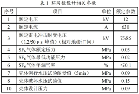 環(huán)網(wǎng)柜殼體外形不同有箱式和筒式之分。由于箱式構(gòu)造有利于完成進(jìn)出線.配電計(jì)劃的實(shí)施,但是箱式在接受壓力的局限性,使箱體不可以接受太高的壓力。下面引見一種環(huán)網(wǎng)柜氣箱的規(guī)劃方法。與氣箱規(guī)劃有關(guān)的環(huán)網(wǎng)柜額外參數(shù)見表1。
