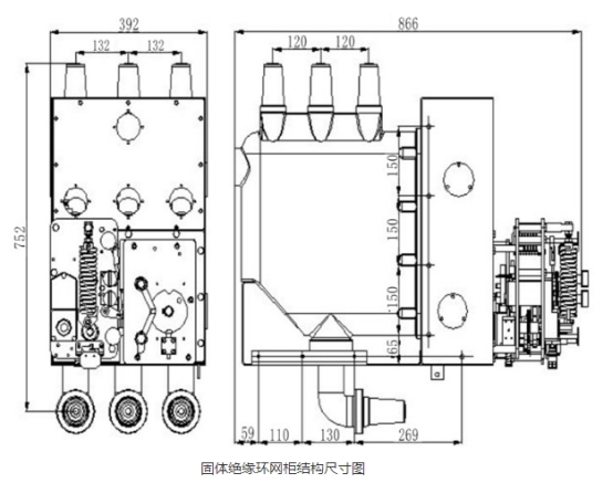 固體絕緣環網柜的固體絕緣系統選用APG工藝成型的固封極柱將真空滅弧室和上下出線座等載流導體封裝成一個整體。隔絕開關安裝在固封極柱的腔體內,使得相間絕緣以固體絕緣方法為主絕緣方法。單相母線可擴展規劃,結束功用單元無線擴展。