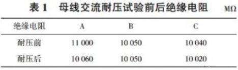 從耐壓實驗進程和表1絕緣電阻數(shù)據(jù)來看,該35kV 充氣柜母線耐壓實驗合格。